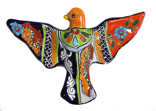 This colorful wall dove embodies all the charm of Mexican life and will look great anywhere. Place them in the garden, on the side of a tree or on a wall, to add a splash of color.  Usable indoors or out, all our ceramic critters also include a hole in the back for hanging.