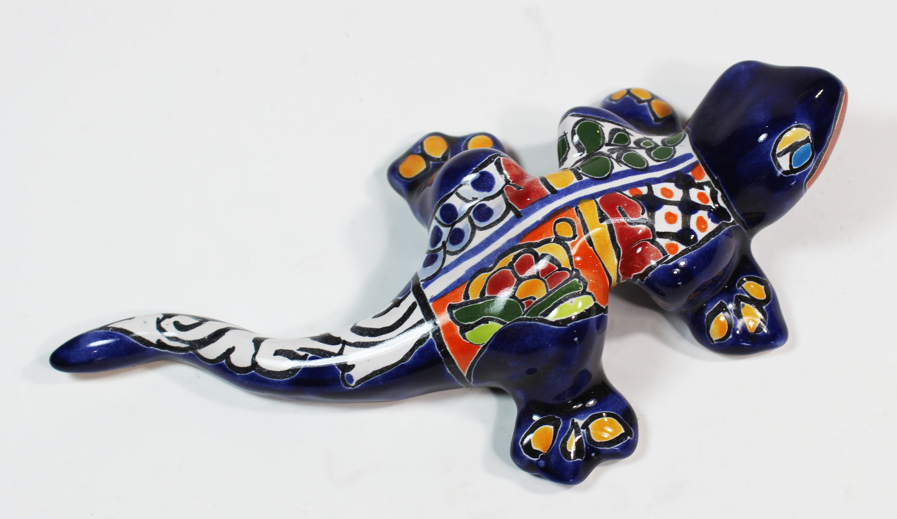 This colorful salamander embodies all the charm of Mexican Talavera and will look great anywhere inside or out. It is sure to brighten any home decor-in the garden, on the side of a tree or on a wall. Holes on back provided for easy hanging.