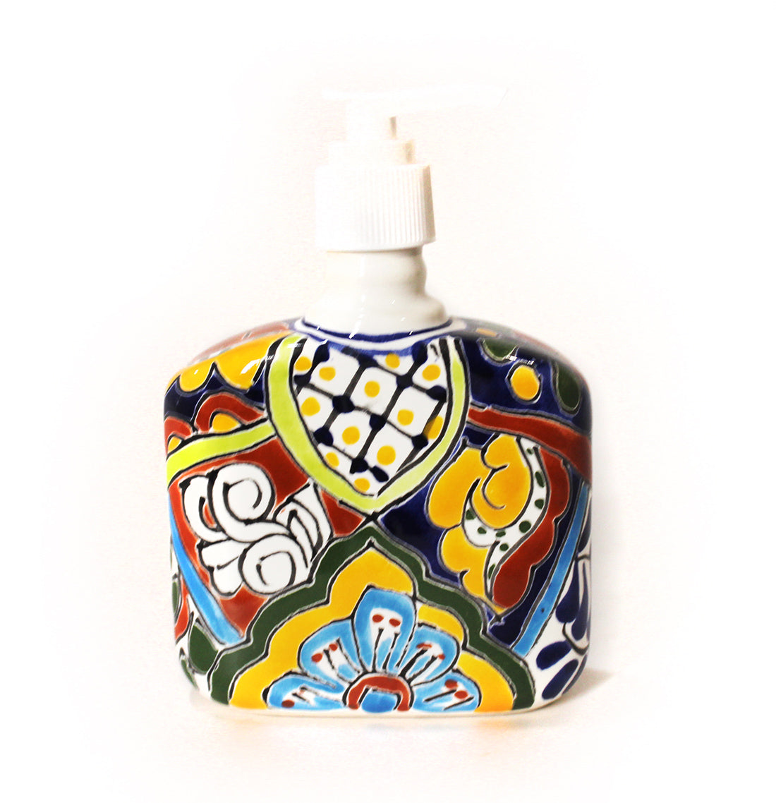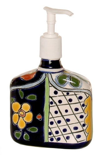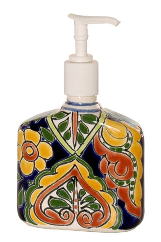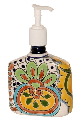 Showcasing all the charm and colors of Mexico, this beautiful hand painted soap pump will look great on any bathroom vanity or kitchen countertop. Pairs perfectly with the other Talavera bath accessories. Twist-on top with pump.
