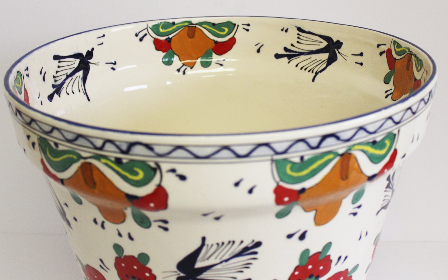 This beautiful and versatile planter embodies all the charm of Mexican Talavera. Featuring classic colors of Mexico in a raised relief design, this striking Talavera Planter will enhance any home or garden.