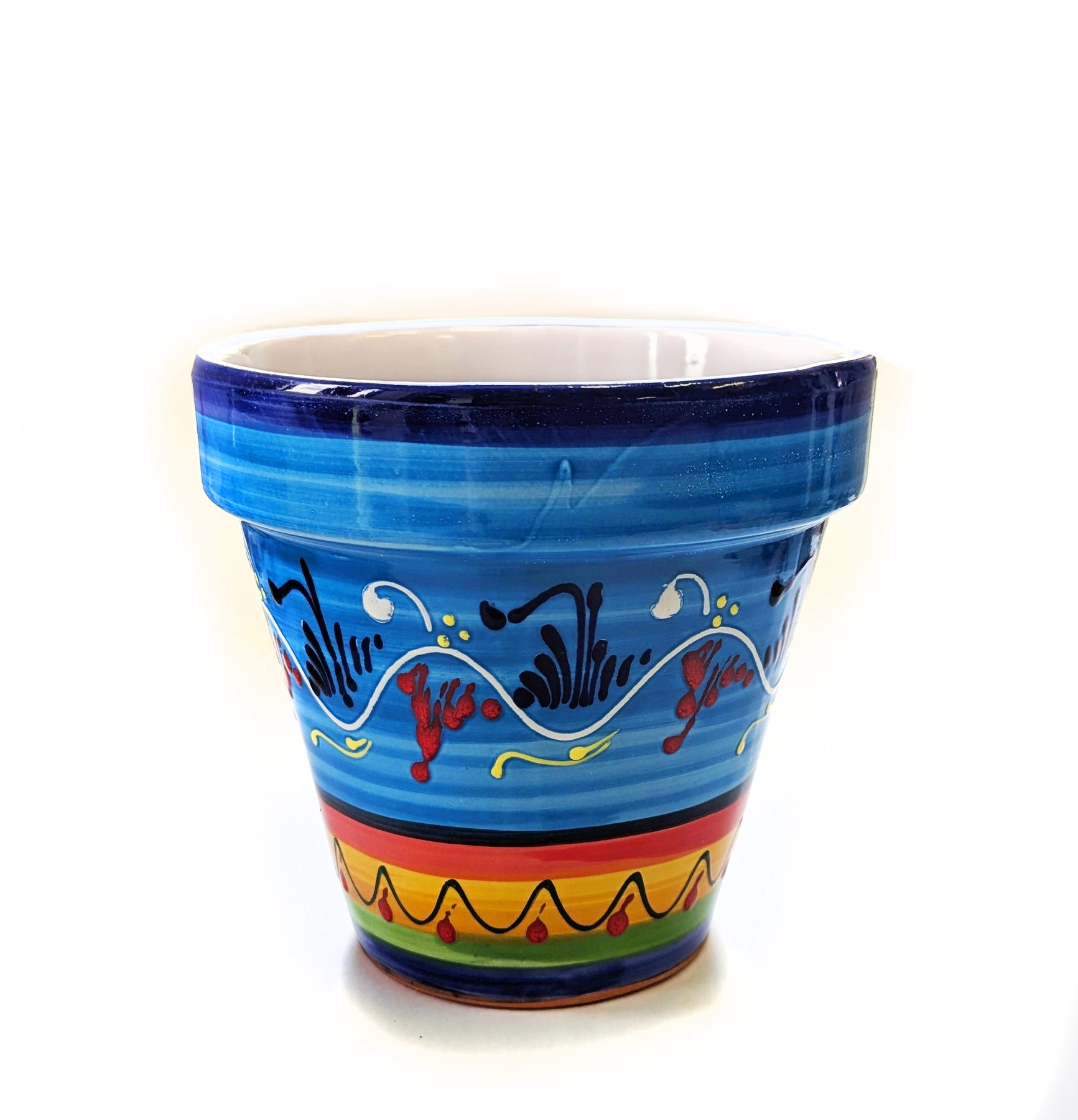 With all the colors of Spain, this pot is sure to add beauty to your home, patio or garden.  Drainage hole provided.