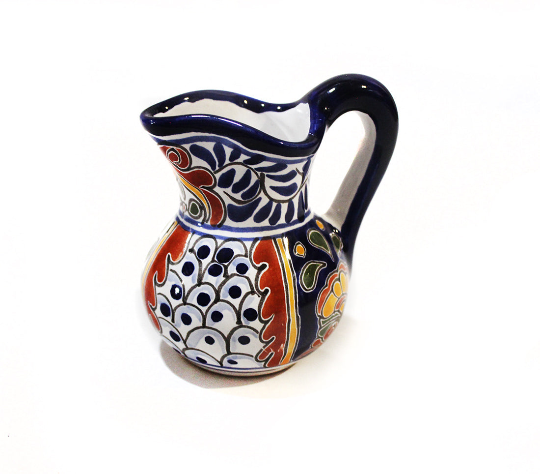 With all the colors and charm of Mexican life, this creamer is the perfect complement to any tabletop. Not only ideal for cream, but it can also be used for pouring sauces or other liquids. Lead free and dishwasher safe.