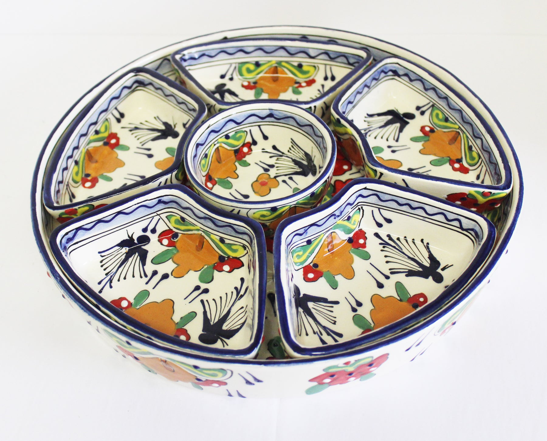 Showing the colors of Mexico this hand painted divided tray is not only lead-free and dishwasher safe but can serve a multitude of purposes with its removable compartments. Perfect for taco night!