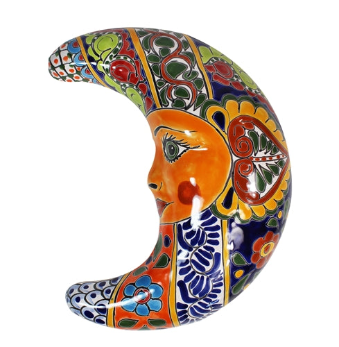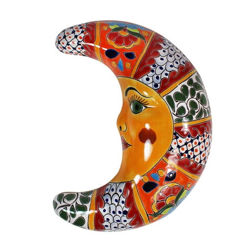 This beautiful hand painted moon face with all the colors of Mexican Talavera will look great on any indoor or outdoor wall. Hole provided for easy hanging.