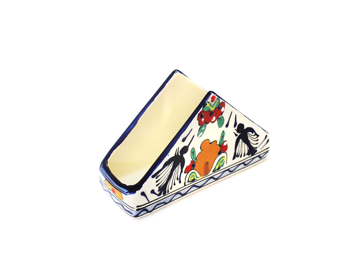 With beautiful colors, this napkin holder is a great addition to any tabletop display. Ideal for cocktail sized napkins. Lead free and dishwasher safe.