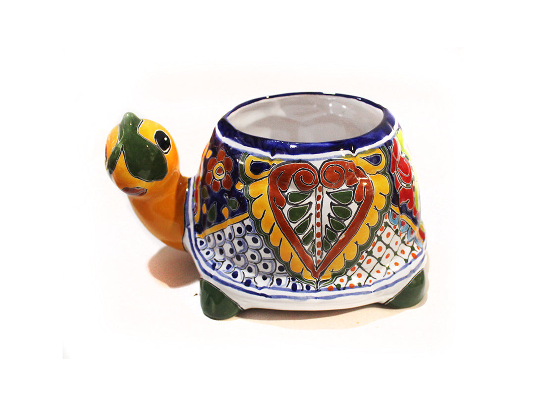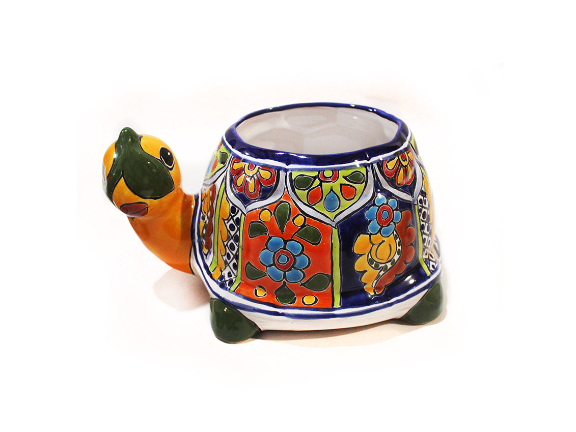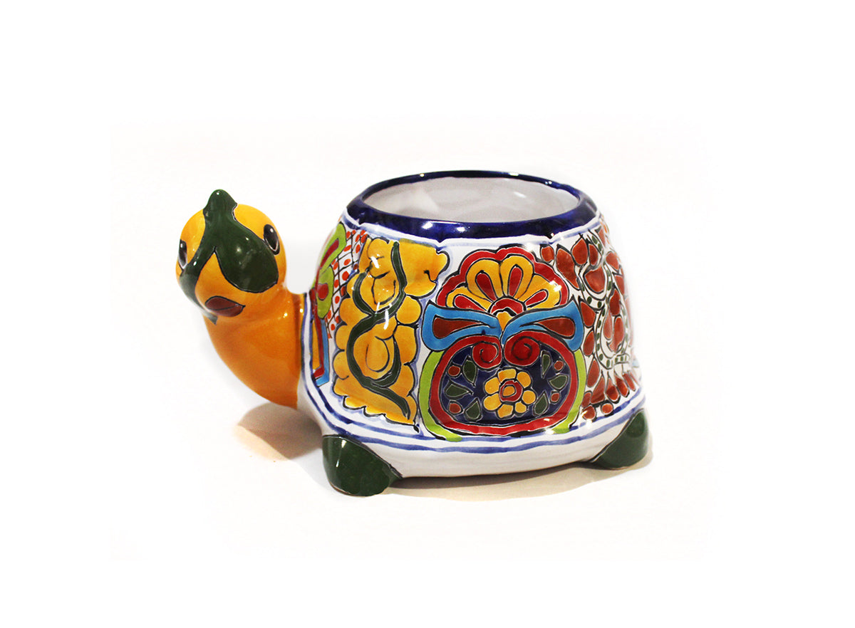 With all the charm and colors of Mexico, these unique planters are a great addition to any garden or patio. Drainage hole provided.